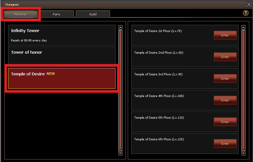 Temple of Desire is a premium dungeon where you can gain a lot of experience points by defeating the monsters that appear there.