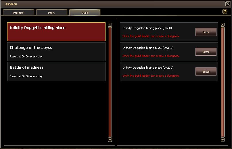 Infinite Doggebi's hiding place can be entered first by the guild master using the ticket item, and then other guild members can enter.